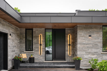 Located a short drive from the Georgian Bay islands, the homeowners imagined a castle in the woods. Their vision materialized into a home that combines elegance and strength. With its impressive stone-clad façade, it is not hard to imagine a royal lineage.