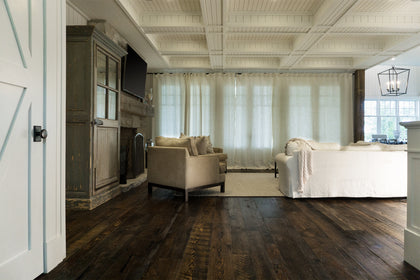 A place where you feel right at home. Waking up to the sun rising on the lake and the thought of another stress free day. This design creates such a warm an inviting atmosphere, but also very refreshing with the bright white slat walls and ceilings and large windows throughout bringing in the natural light that highlights the texture and rich tones of the reclaimed hemlock floors.