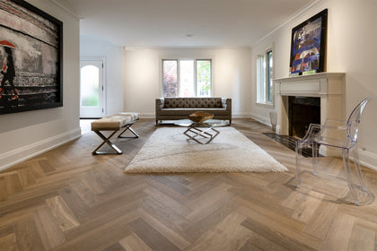 With the white walls acting as a canvas to the beautiful paintings occupying them, and the directional flow of the herringbone floors; you experience a calming atmosphere similar to that of an art gallery.