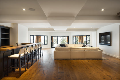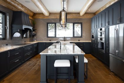 Building a contemporary lodge from scratch is an experience few will undertake. Logistically, the log frame needed to be built in British Columbia, deconstructed, transported to the build site, then thoughtfully reassembled, piece by piece. Massive cedar timbers form the structure of the home, while natural stone is featured throughout, creating a lodge aesthetic inside and out.