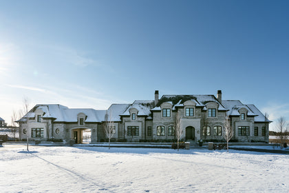 Among the rolling hills and lush forests occupying the countryside North of Toronto, this Northern Hills residence is designed in the Neoclassical tradition. The home's brick facade, expansive windows, and elegant trim immediately awaken a European country house nestled into the landscape.
