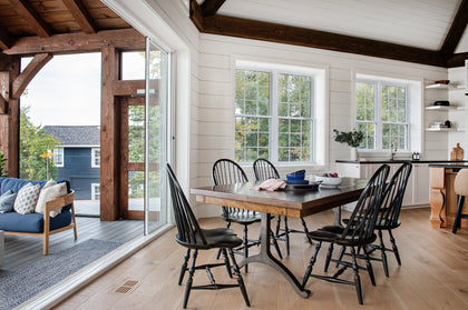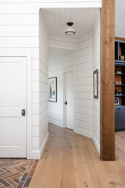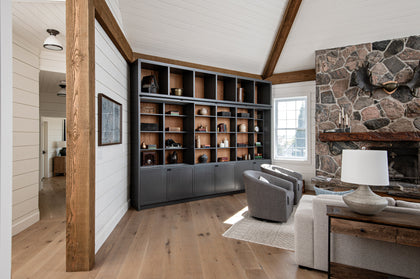 Jesse Austin and his skilled team at Austin Builders meticulously crafted timber wall elements, adding an authentic touch to the interiors. Having worked with Northern Wide Plank products before, Austin Builders was quick to recommend NWP engineered hardwood flooring selection to designer Joanne Dolan: