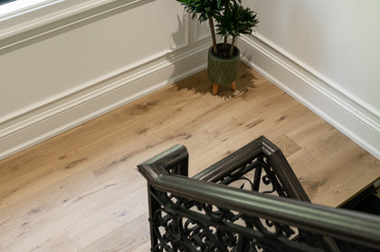At the epicenter of this residence, is Jura Genuine French Oak from Northern Wide Plank’s Tannic Collection. The 7” (180mm) wide planks, arranged in both plank and herringbone patterns, provide a foundation of rustic refinement.