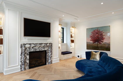 Meanwhile, the basement underwent a dramatic transformation. Excavating and underpinning were necessary to achieve the now impressive 9’2” ceilings, and the removal of a 65-year-old bomb shelter posed logistical challenges—but the result is nothing short of extraordinary.