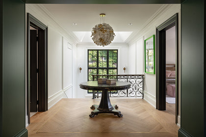 From its inviting natural finish to its timeless herringbone layout, the flooring mirrors the home’s blend of strength and charm, described by the homeowners as “tough as a British battleship, with the passionate charm of a John Keats poem.”