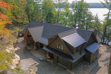 The inspiration behind this project was as deep-rooted as the Muskoka landscape itself. A desire to create a space that seamlessly melds with its surroundings fueled the vision—a cottage intentionally hidden from the lake, harmonizing its colours and profile with the natural beauty of Muskoka. The result? An architectural marvel where wood, native stone, and metal converge to mirror the elements of the surrounding landscape.