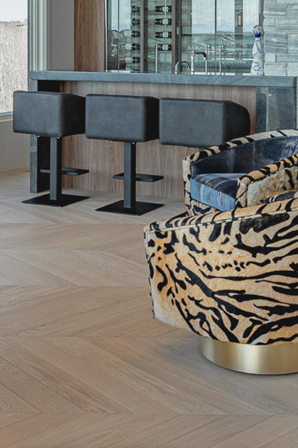 NWP’s chevron specialty wood floors are available in all flooring collections and in different sizes.